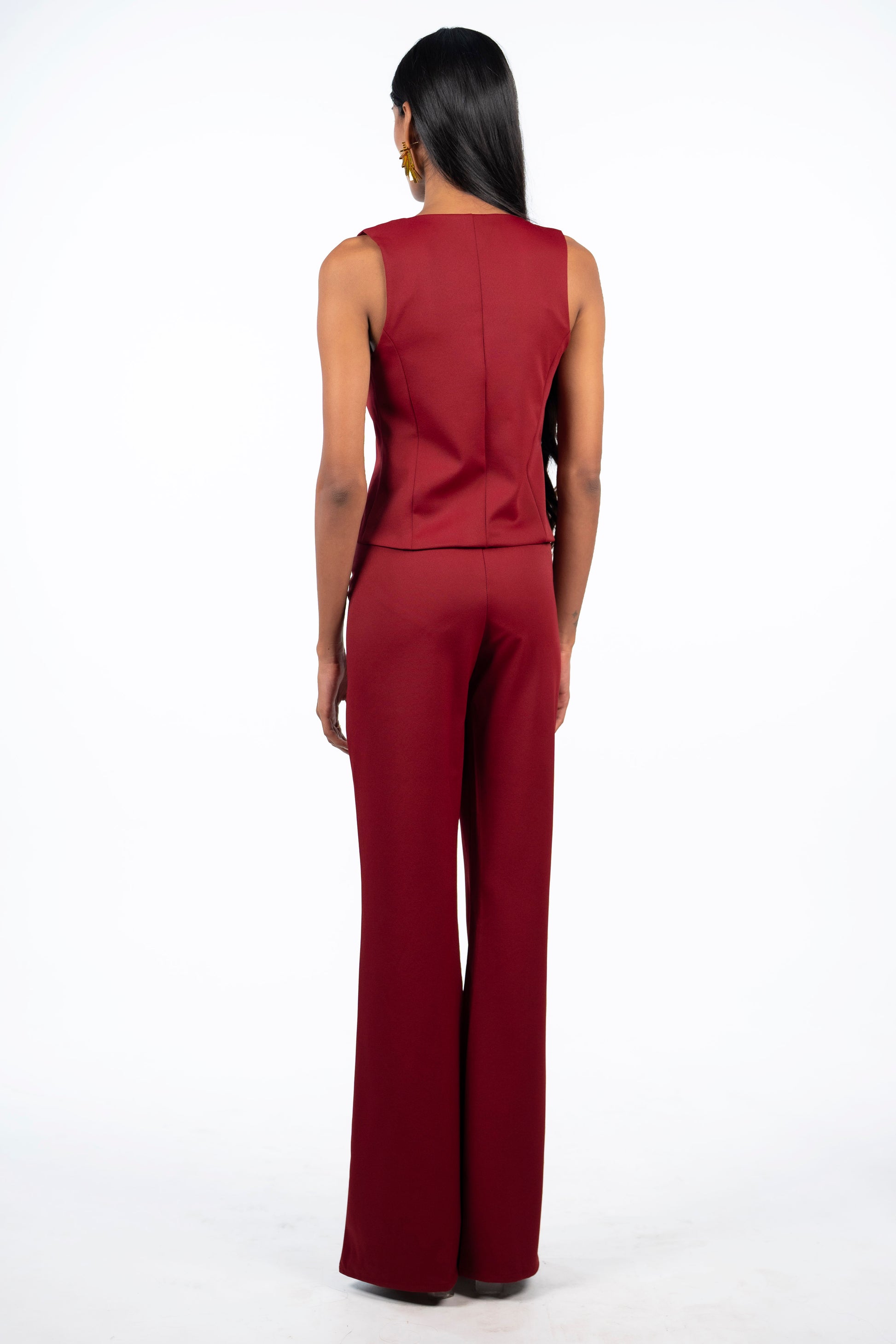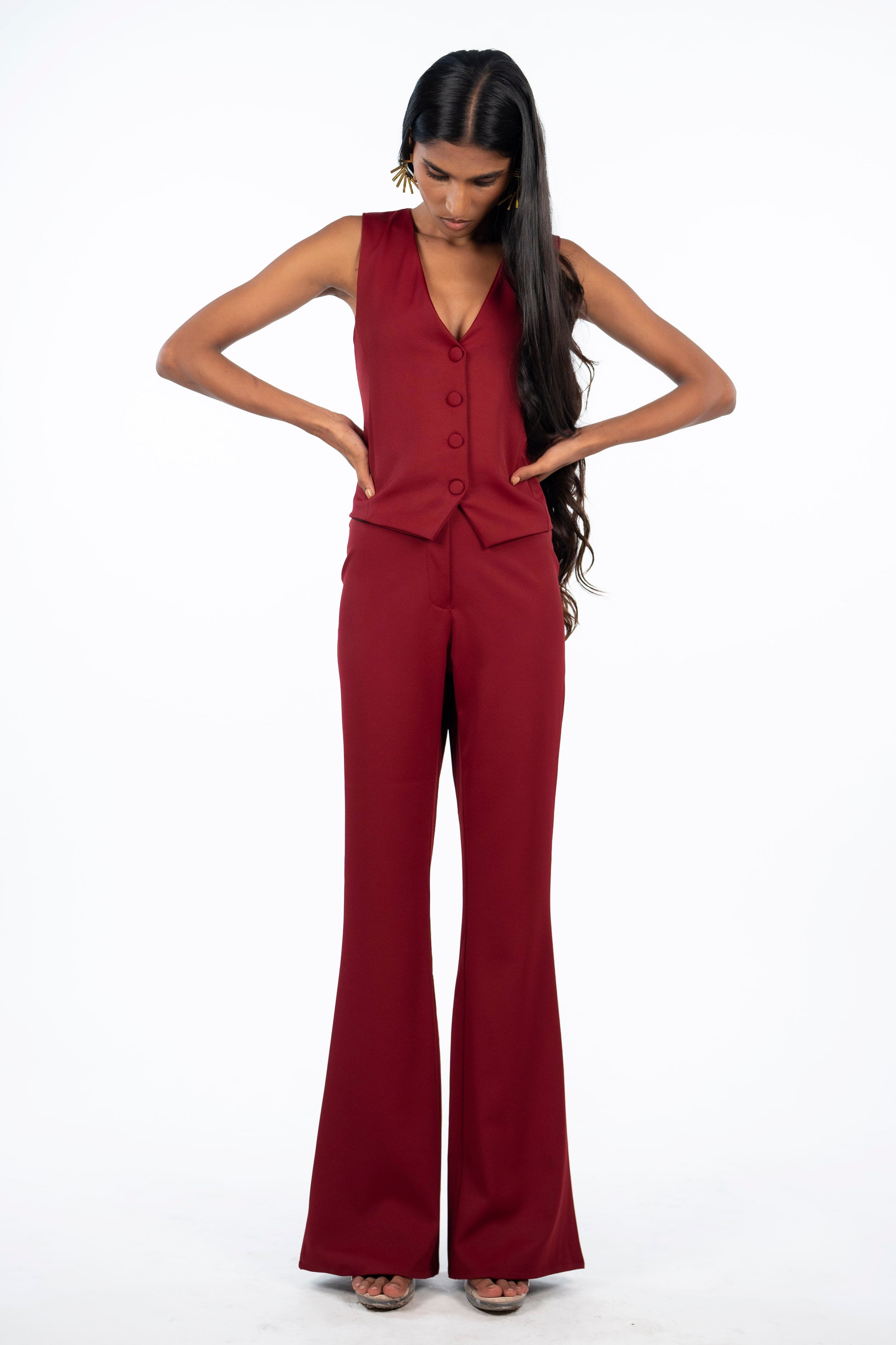 High-rise tailored trousers with a flattering flared hem. Featuring a sleek front seam detail, zip closure, and a form-fitting silhouette that elongates the legs. Perfect for elevating both workwear and smart-casual looks.