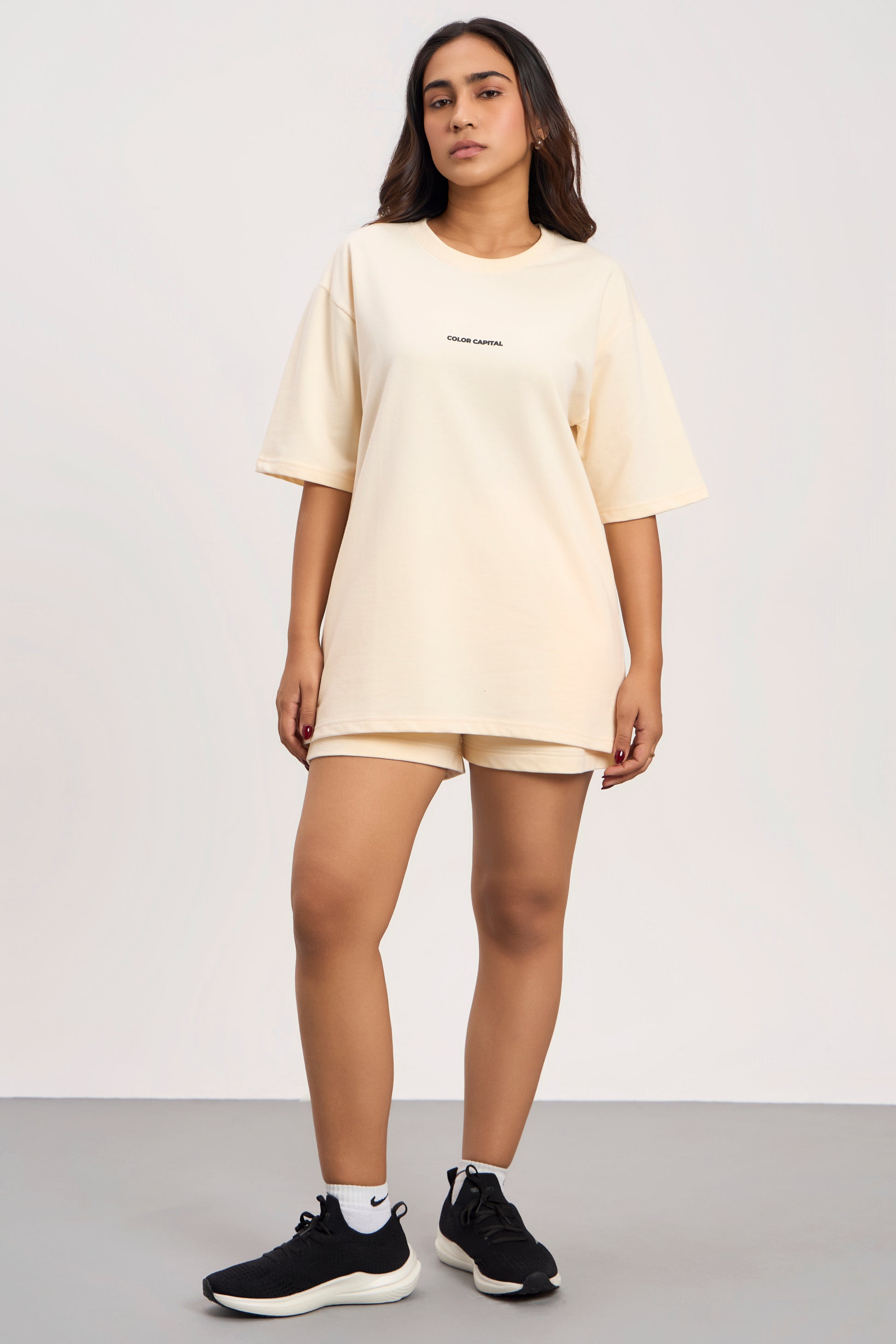 Oversized T-shirt in soft cotton terry with a rib-trimmed neckline and low dropped shoulders.